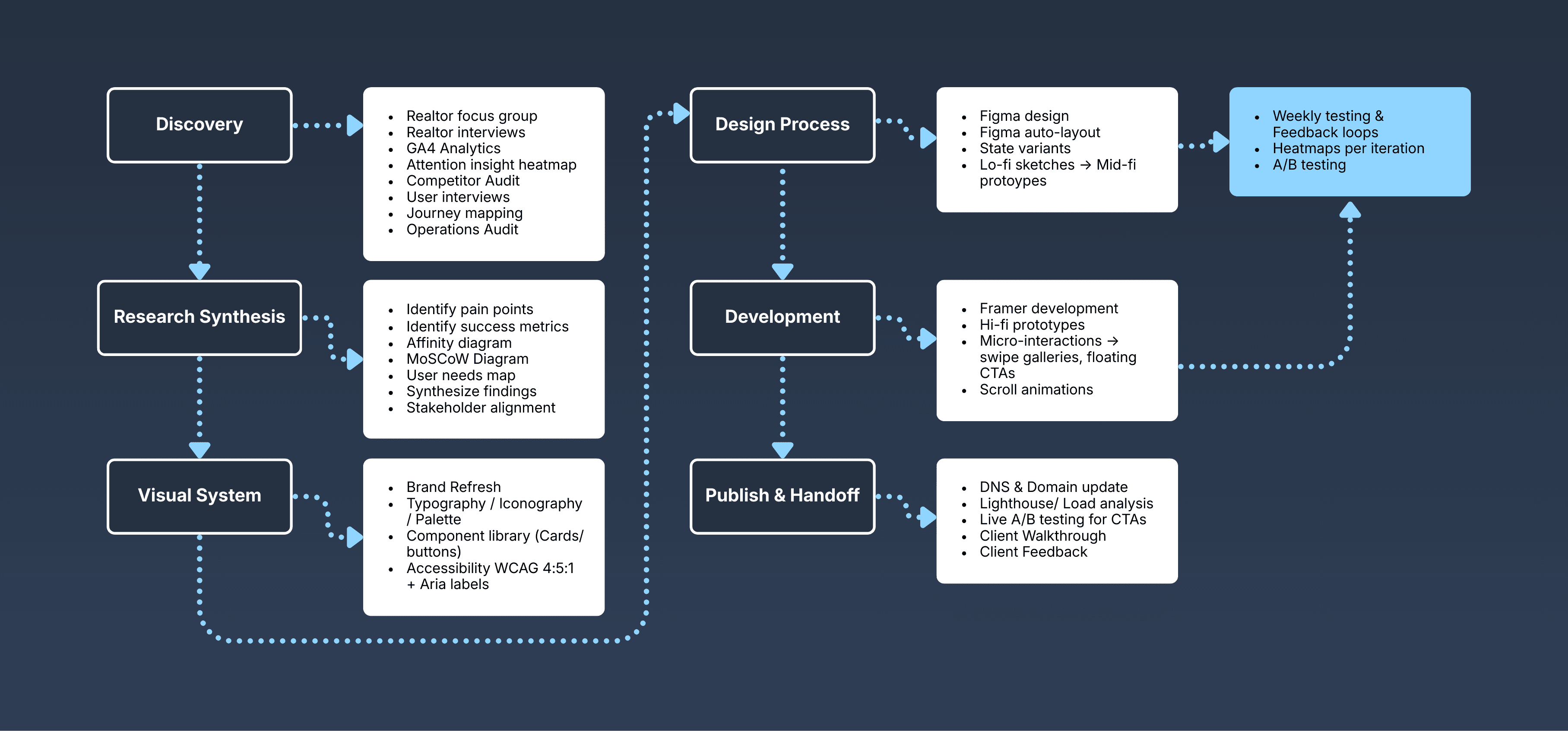 Having more frequent feedback loops with realtors, stakeholders and users validated assumptions early, saving redesign costs later on.