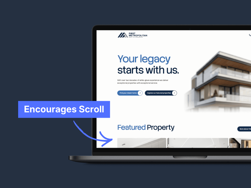 The previous site had issues getting users to scroll. So I implemented a curiosity hook to encourage users to keep scrolling using an above the fold peek.