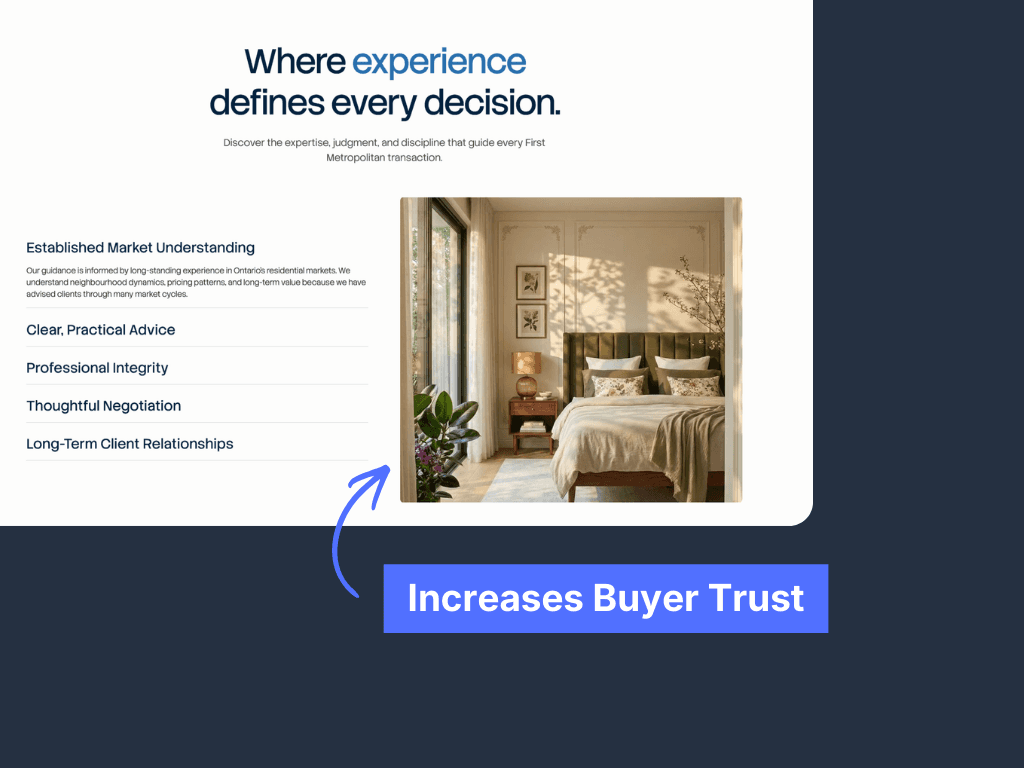 Designed for trust, reliability and professionalism, with a UI focus to target the client's pain points.