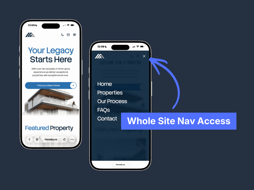 As a solo designer, I tackled First Metropolitan Realty's complete rebrand and site development by reverse engineering their analytics and user feedback, pinpointing pain points to optimize my client's positioning in Toronto's competitive realtor market against giants like Sotheby's. Using this approach, I delivered an animated, fully responsive site with 20+ screens, and a scalable brand identity system, including a modular logo suite, brand assets and collateral.